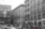 Fotografía en la que vemos la Plaza Sas y el inicio de la calle Estébanes. En la casa de la derecha situada en el inicio de la calle Estébanaes, vemos el antiguo edificio que existía antes de realizar la reforma del sector. En ella el Hostal España, los helados Miguel, a su lado el lugar donde se estableció a principios de los años 50 del siglo XX el primer establecimiento de perfumerías Chiro; y en la esquina con Blasón Aragonés una oficina de Renfe.