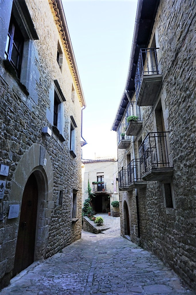 Por la Puerta de Jaca se accede a dos de las calles más pintorescas de Sos: una se trata de la calle Ramón y Cajal; y la otra la del Ejército Español. La de la fotografía es la de Ramón y Cajal y podemos observar como las calles se adaptan a los desniveles del terreno.