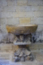 Estado actual de la pila bautismal, situada en el lado sur del templo. Se trata de una pila de estilo románico del siglo XI.